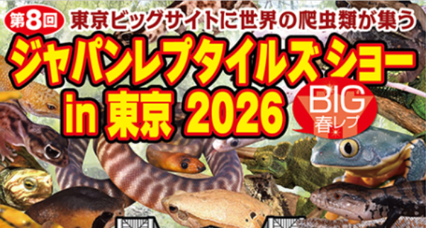 4月25日(土)・26日(日)に東京ビッグサイト(東京都)にて開催されます、「ジャパンレプタイルズショー in 東京 2026」に出展します。